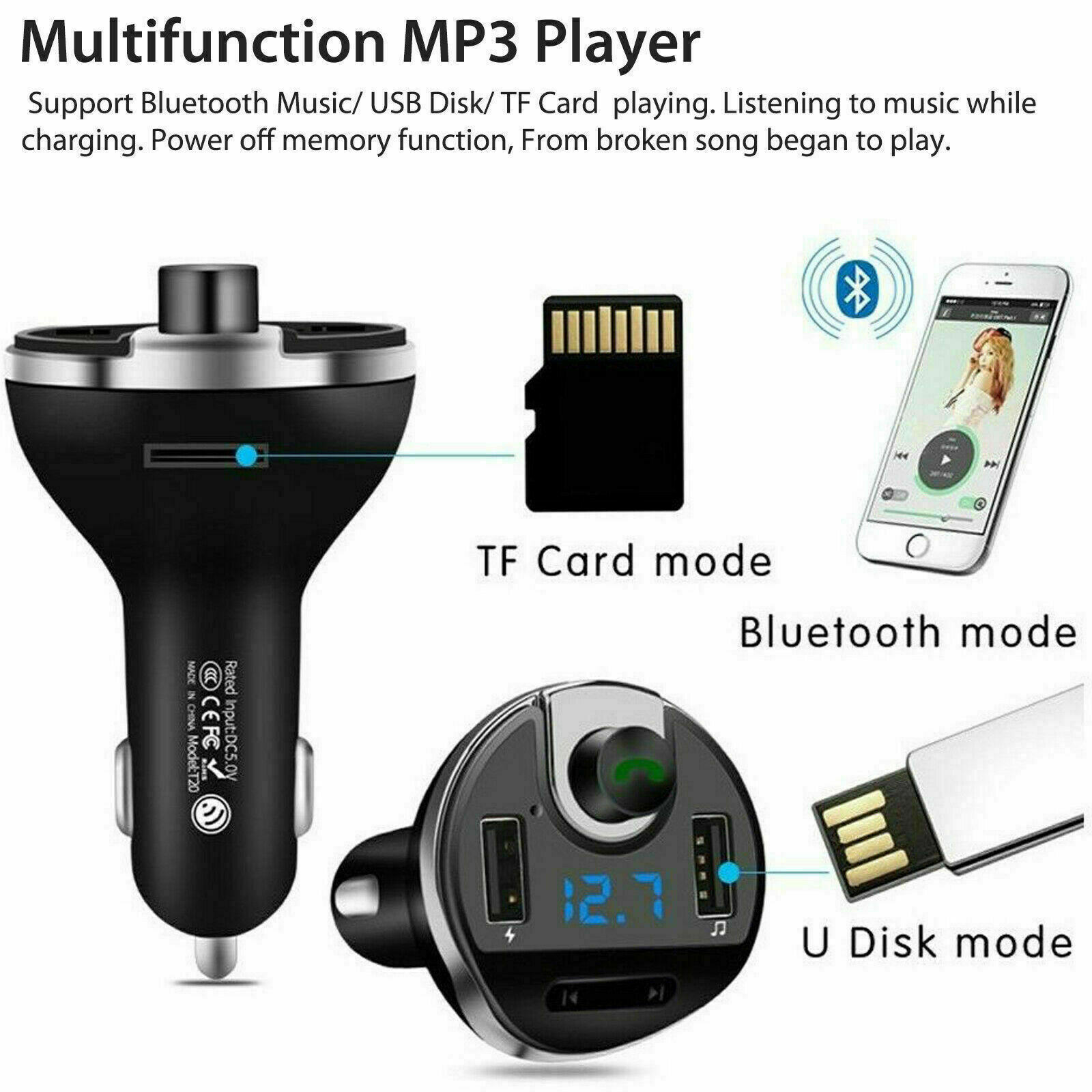Wireless In-Car Bluetooth FM Transmitter MP3 Radio Adapter Car Fast USB Charger